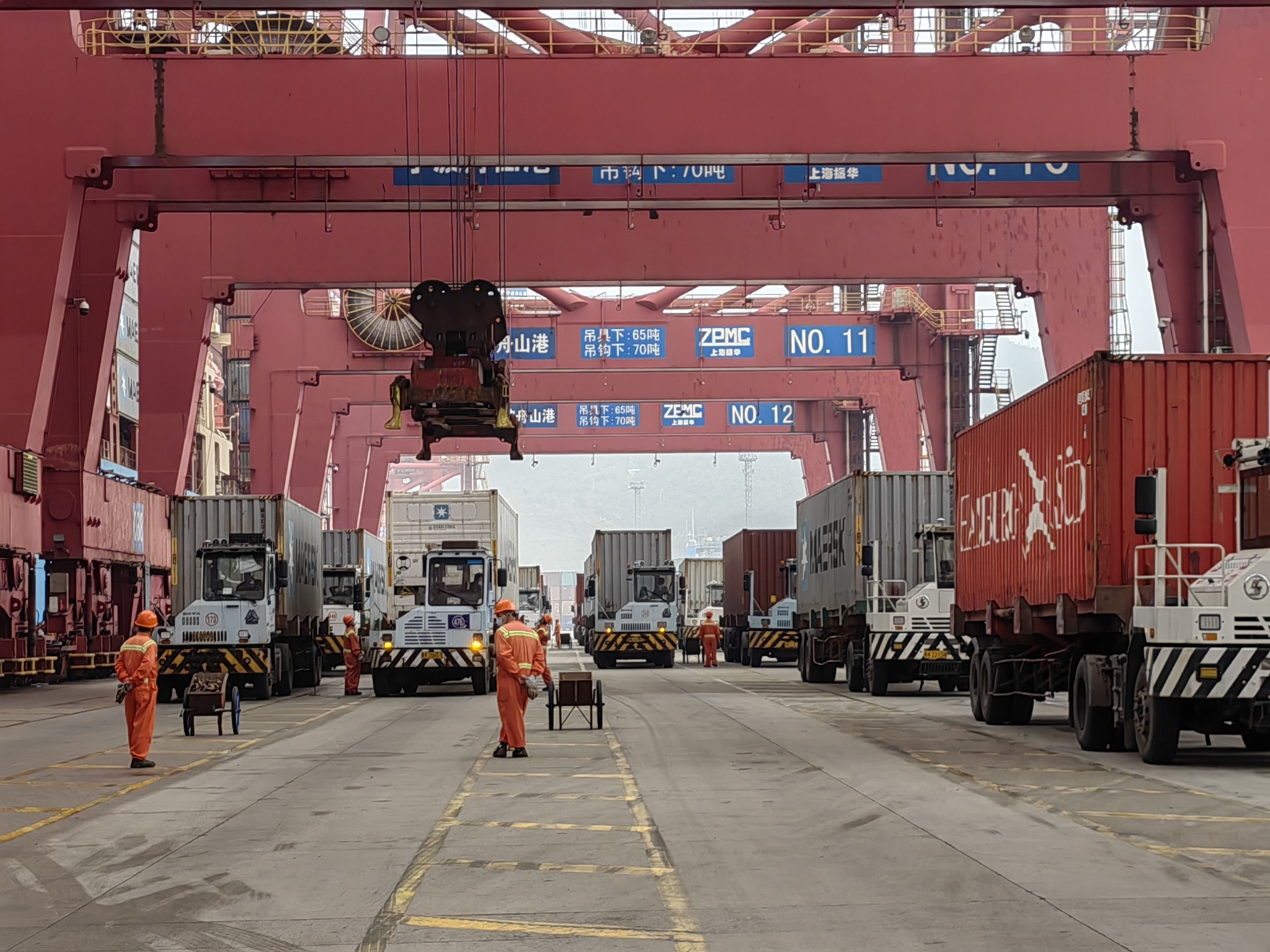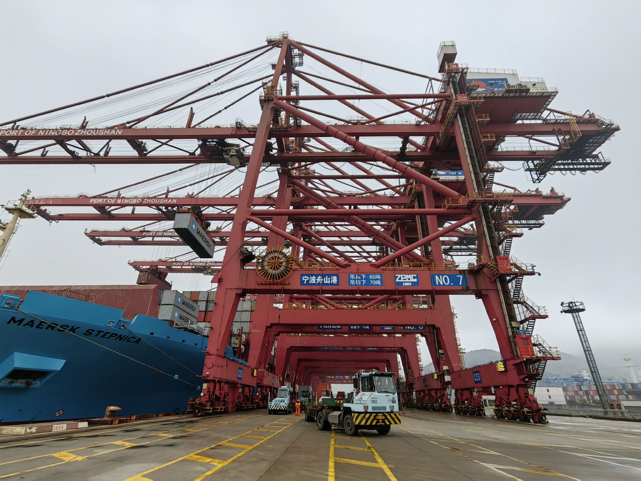 “目前,穿山港区的集装箱码头泊位几乎每天都没有空当,码头满负荷作业。桥吊忙的时候可能要开到45个,基本没有设备是空闲的。”宁波北仑第三集装箱码头有限公司营运操作部经理蒋海江说。